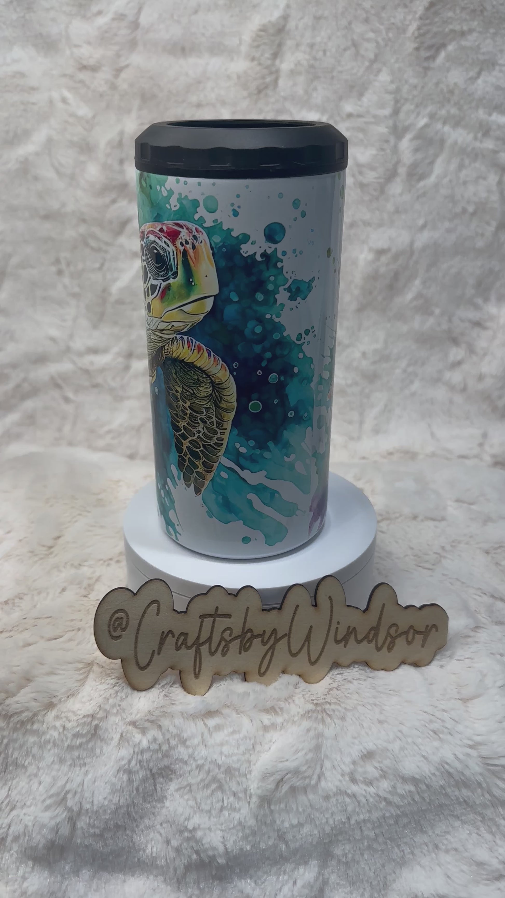 This custom 4 in 1 Can Cooler will hold 12 ounce bottles, regular 12 ounce cans, skinny cans, and also comes with a lid so it can be used as a 16 ounce tumbler for coffee or other drinks. It is versatile, durable, and easy to use.