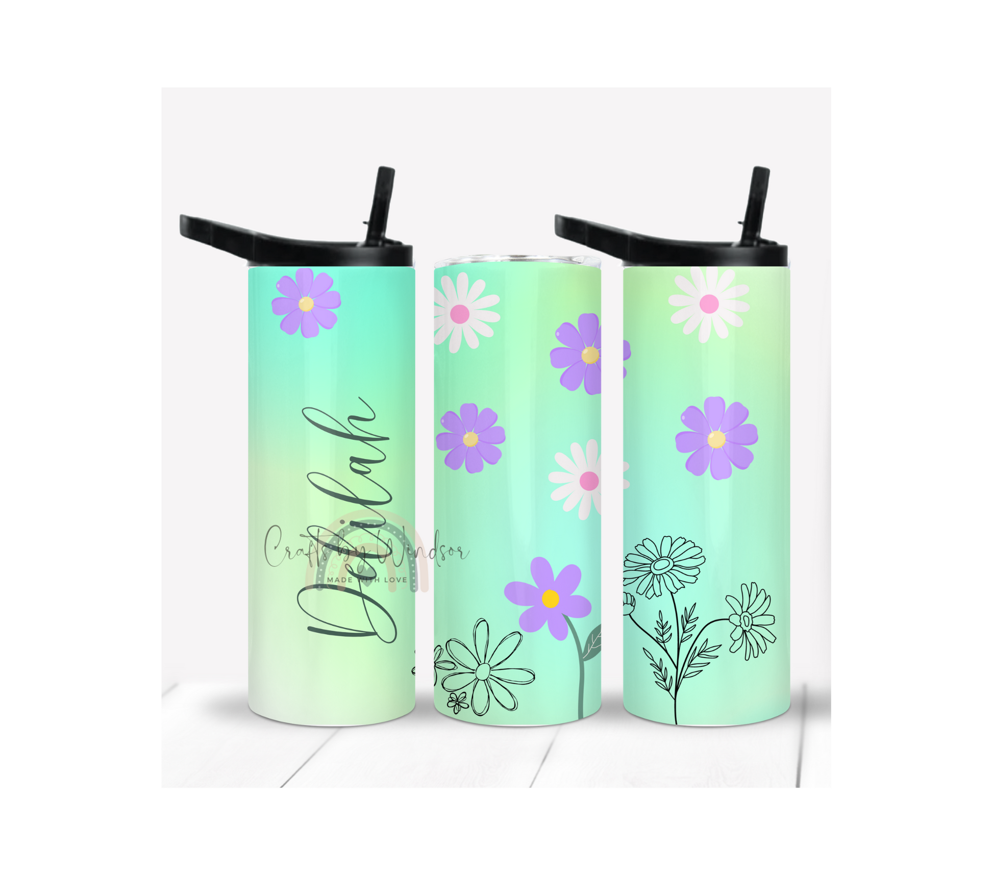 Quench your thirst in style with our Wild Flower and Daisy personalized tumbler. This fun and quirky tumbler features a beautiful wild flower and daisy design, with your name personalized on it. Perfect for any beverage, this tumbler is a unique way to stay hydrated while on the go. (Hydrate in style!)